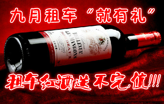 為了感謝先新老客戶對本公司的關(guān)照和支持,凡在本公司租賃商務(wù)車的客戶即可享受“大禮品”價值298元進口紅酒一瓶,優(yōu)先報名者禮品不斷,送不完的禮品等你哦??!