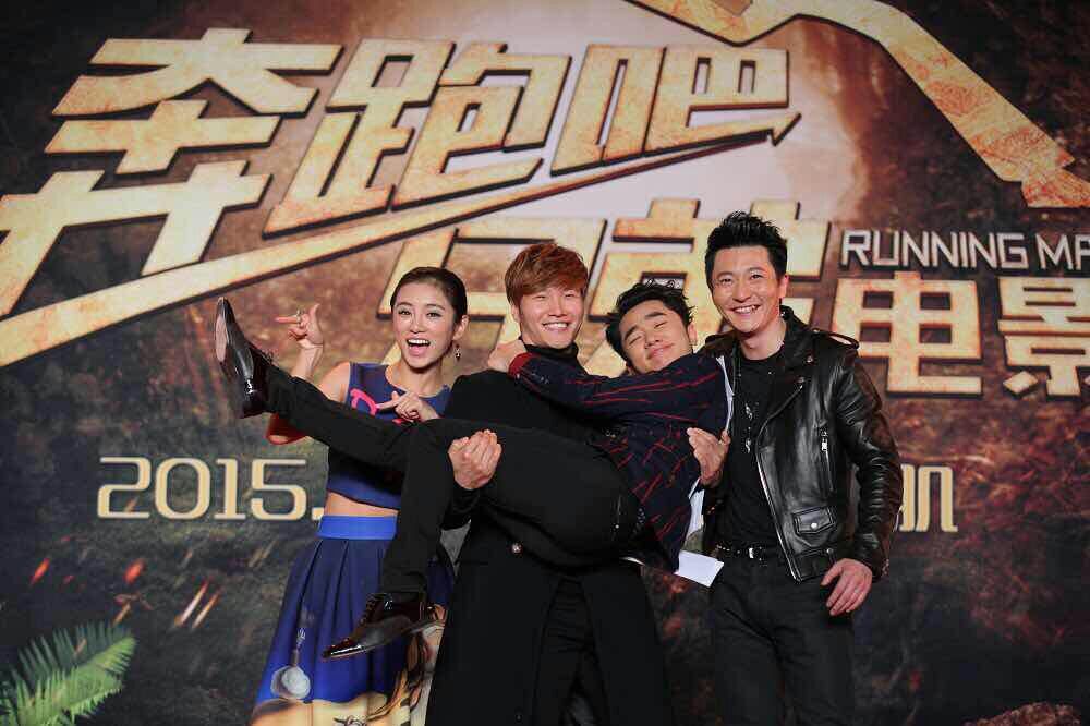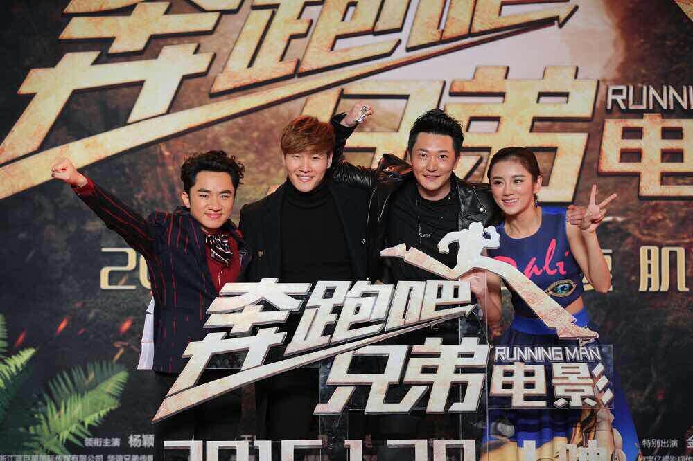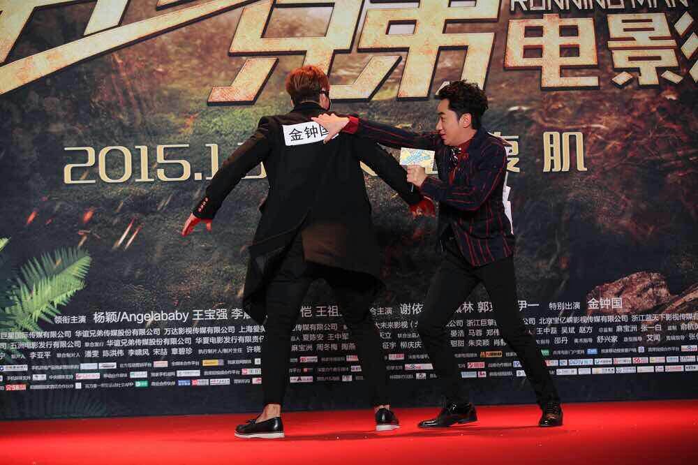 大電影“奔跑吧,兄弟”宣傳活動現(xiàn)場,金鐘國和王祖藍。(北京一路領先汽車租賃公司)圖