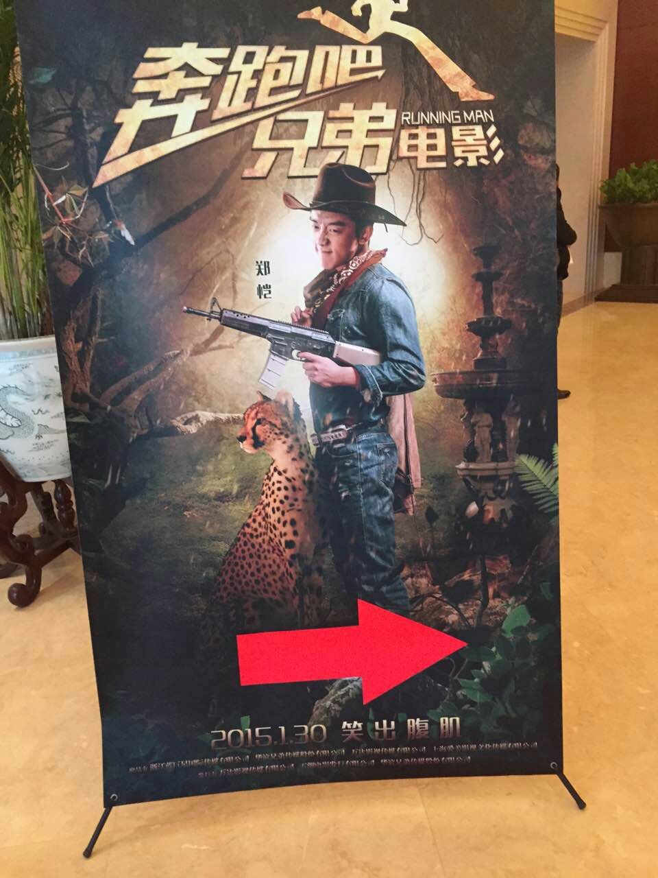 大電影“奔跑吧,兄弟”宣傳活動現(xiàn)場,鄭凱海報。(北京一路領先汽車租賃公司)圖